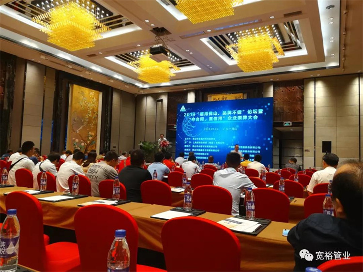 佛山宽裕管业被授予“守合同、重信用”企业,佛山市金属材料行业协会执行会长李强先生亲自颁奖。