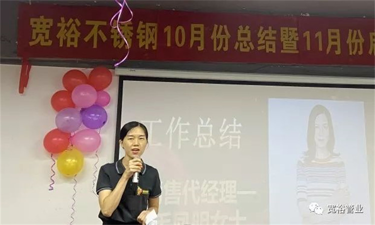 (宽裕销售经理毛凤明女士在台上做工作总结展望)