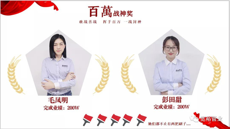 一个优秀的个人比不过一个优秀的团队!没有优秀的个人不可能有优秀的团队!恭喜本次的最佳团队获得者:精鹰队!精鹰队在毛经理的带领下多次斩获殊荣,而毛经理本人也多次夺得各项销售大奖!是宽裕企业的顶流担当!期待2021再接再厉,团队不断发展壮大!成为一支越战越勇,越战越强的精鹰军队!