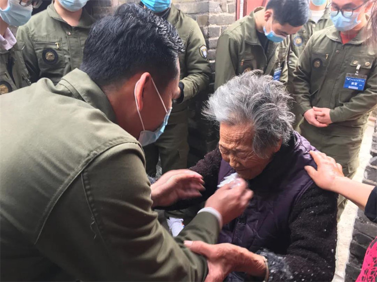 ▲突击队的武一为婆婆擦眼泪。婆婆有3个女儿1个儿子,可是她却只有一个人住在一间已经破败不堪的小房子里,里面传来阵阵的恶臭。她头发很长,腿有撞伤流血而未清除的淤血。她一直对我们说感谢,动情处热泪凝眶,见者无不动容!与物质相比,更多的老人家们更需要的是亲人,子女的陪伴和关爱!一直崇尚以孝为先的社会,原来依然有那么多不为人知的“隐秘的角落”!